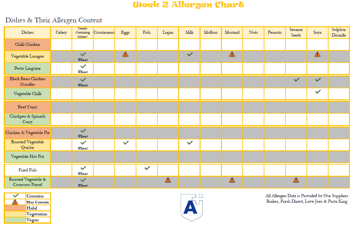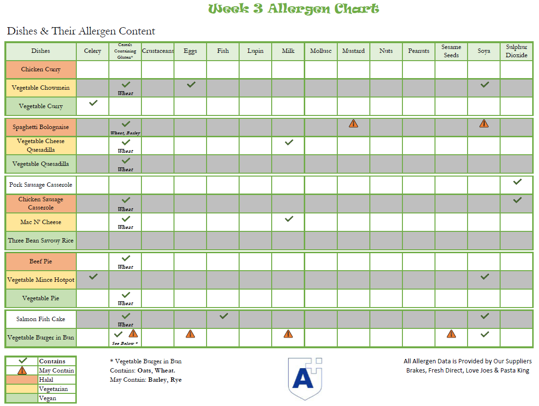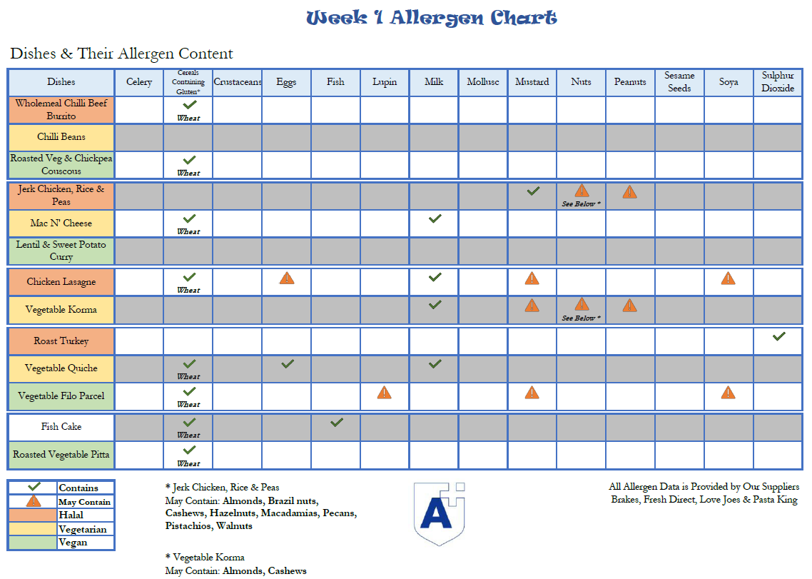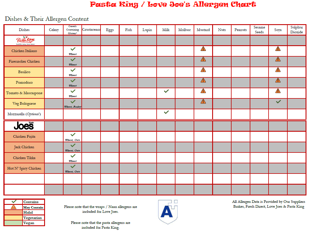 All allergen data is provided by our suppliers: Brakes, Love Joes and Pasta King.