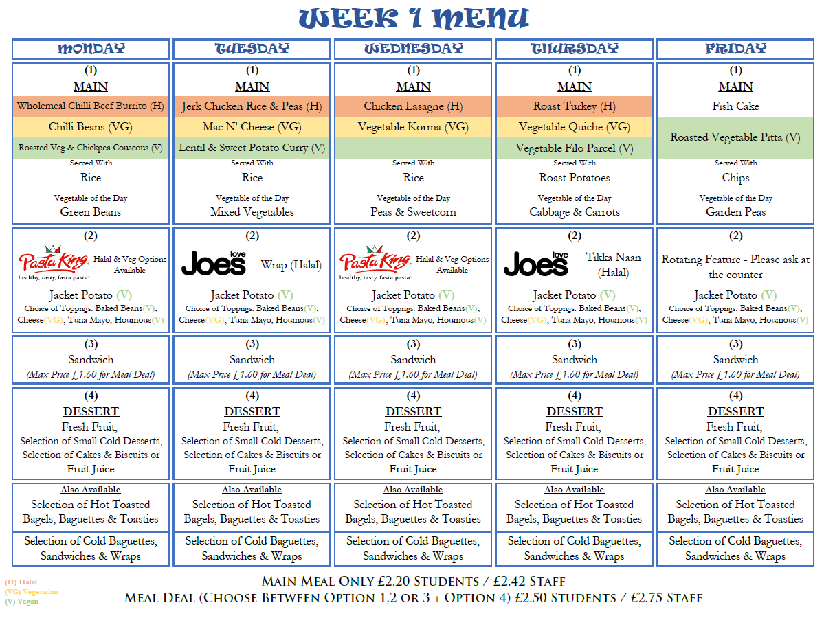 Our Meal Deal offers a wide choice of tasty, nutritious meals that provide great value for money at only £2.50.