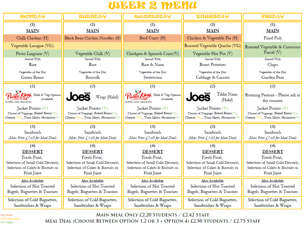 - Option 2: Jacket Potato, Pasta King, or Chicken Joes