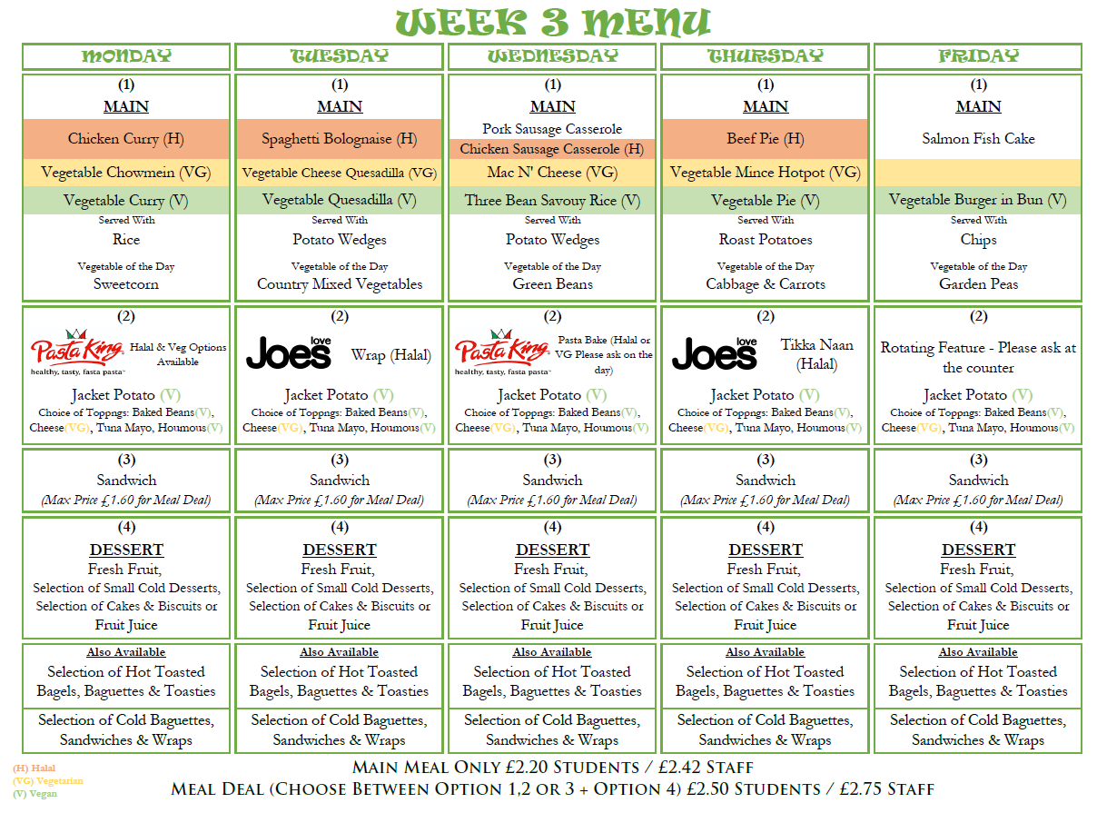 - Option 3: Choice of Sandwich (up to the value of £1.60)